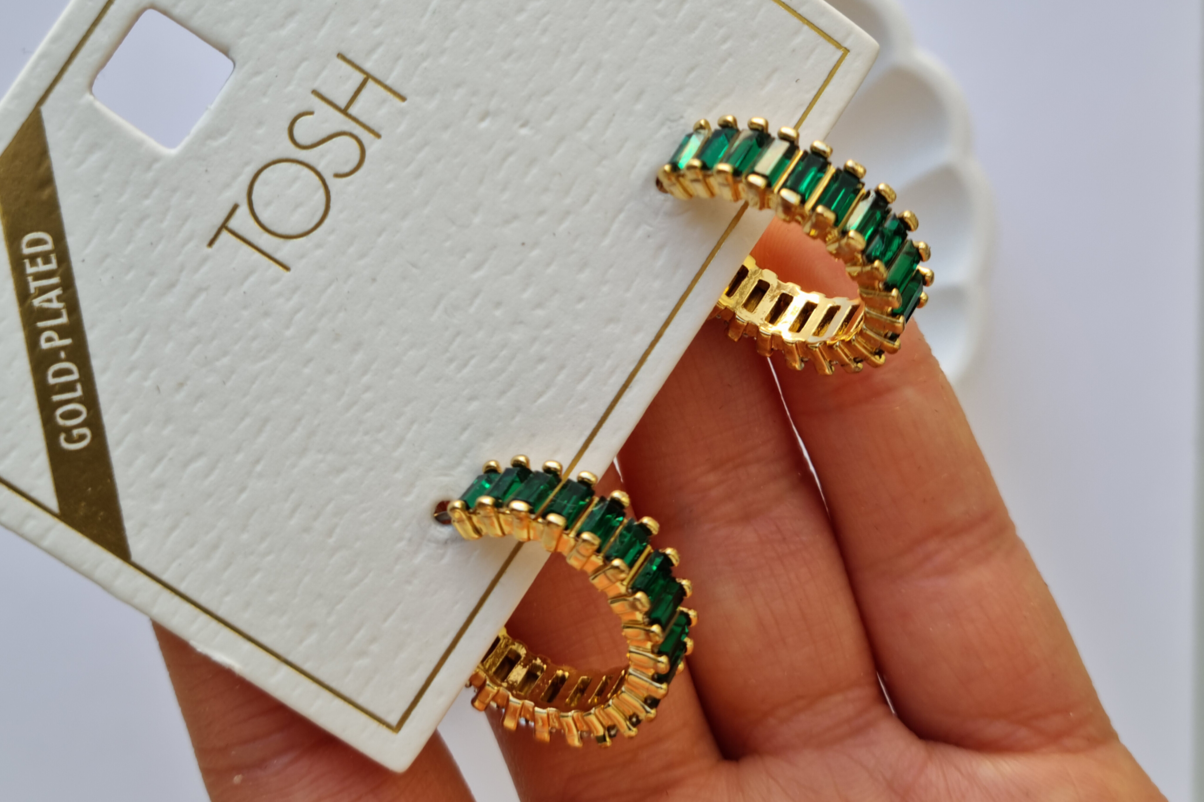 گوشواره حلقهای طلایی با سنگ سبز زمردی TOSH۱۹۹٬۰۰۰ تومان